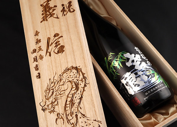 ご希望のオリジナルイラスト、ロゴ、文字などを微細なレーザー光線で彫りあげます。お箱の素材は桐箱かファルカタ材をお選びいただけます。ご注文の際に桐箱かファルカタ材どちらかをご指定くださいませ。見た目の違いは桐箱の方には木目があり、ファルカタ材にはございません。またお値段は桐箱の方が高くなります。風合いや重量に違いがございますので用途やご予算に合わせてご選択ください。なお、弊社でもテンプレートを何種類かご用意しております。