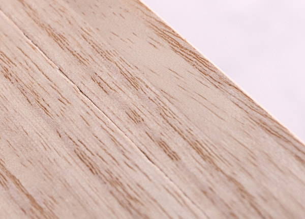 ファルカタ材はマメ科の広葉樹で軽くて柔らかい材質が特徴です。色は明るめの白に少し淡い桃色を足したような優しい色合いです。また、土に還ることが出来る素材のため埋めて処分することが可能で、環境にも優しい木材です。